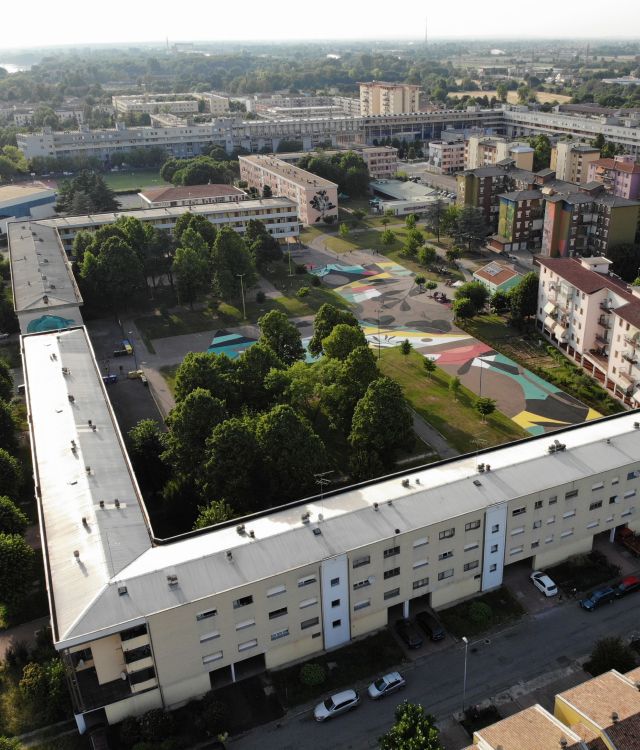 Durante il festival Withouth Frontiers, Lunetta a Colori a Mantova, la Piazza Unione Europa, centro del quartiere popolare Lunetta, ha cambiato volto attraverso i 1.000 litri di vernici colorate Univer, brand del gruppo PPG Architectural Coatings, e forme ispirate alla natura.