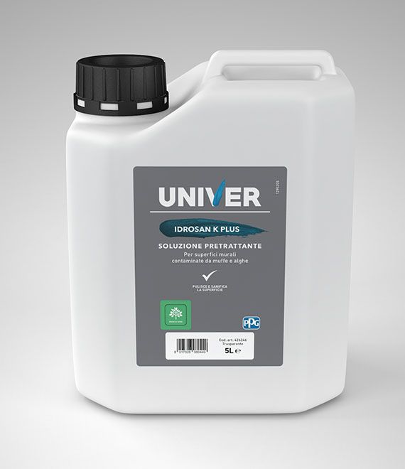 • Soluzione detergente ad ampio spettro specifica per la pulizia di superfici murali contaminate da muffe e alghe.