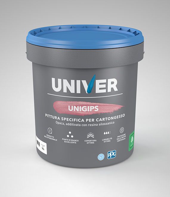 • Eccellente adesione su cartongesso, non richiede fondo;