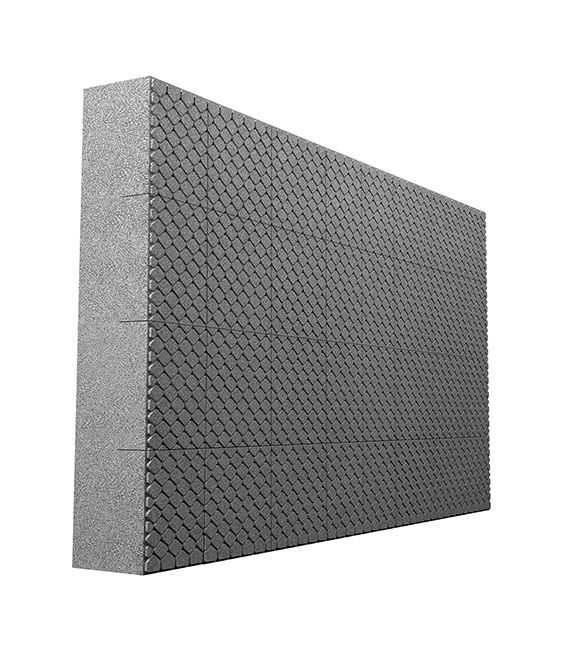 Pannello termoisolante in polistirene espanso sinterizzato stampato ad alta densità, detensionato, goffrato additivato con grafite, conforme al protocollo CAM, autoestinguente classe E, λ 0,030 W/mK.